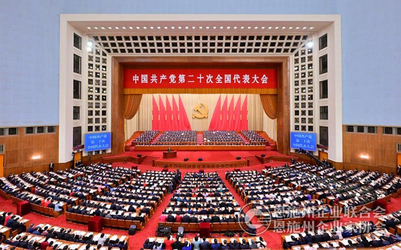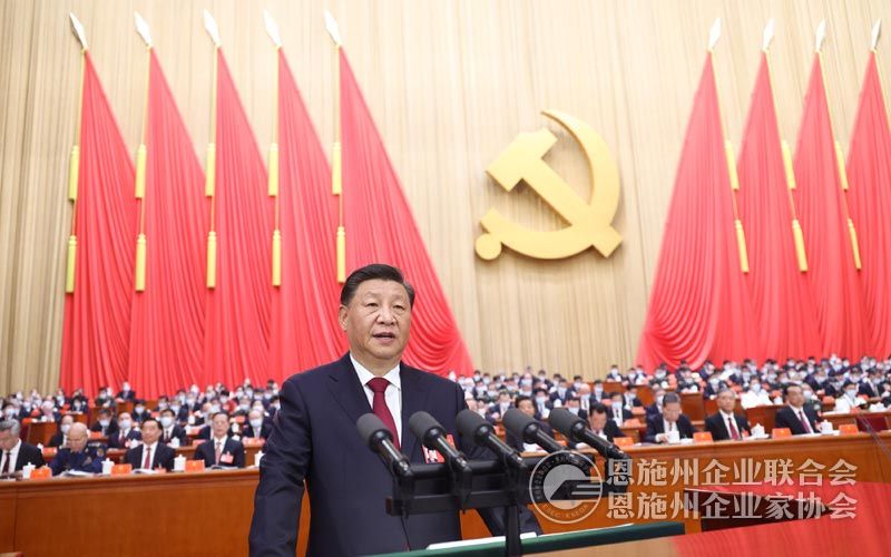 习近平代表第十九届中央委员会向大会作了题为《高举中国特色社会主义伟大旗帜 为全面建设社会主义现代化国家而团结奋斗》的报告。习近平指出,中国共产党第二十次全国代表大会,是在全党全国各族人民迈上全面建设社会主义现代化国家新征程、向第二个百年奋斗目标进军的关键时刻召开的一次十分重要的大会。大会的主题是:高举中国特色社会主义伟大旗帜,全面贯彻新时代中国特色社会主义思想,弘扬伟大建党精神,自信自强、守正创新,踔厉奋发、勇毅前行,为全面建设社会主义现代化国家、全面推进中华民族伟大复兴而团结奋斗。