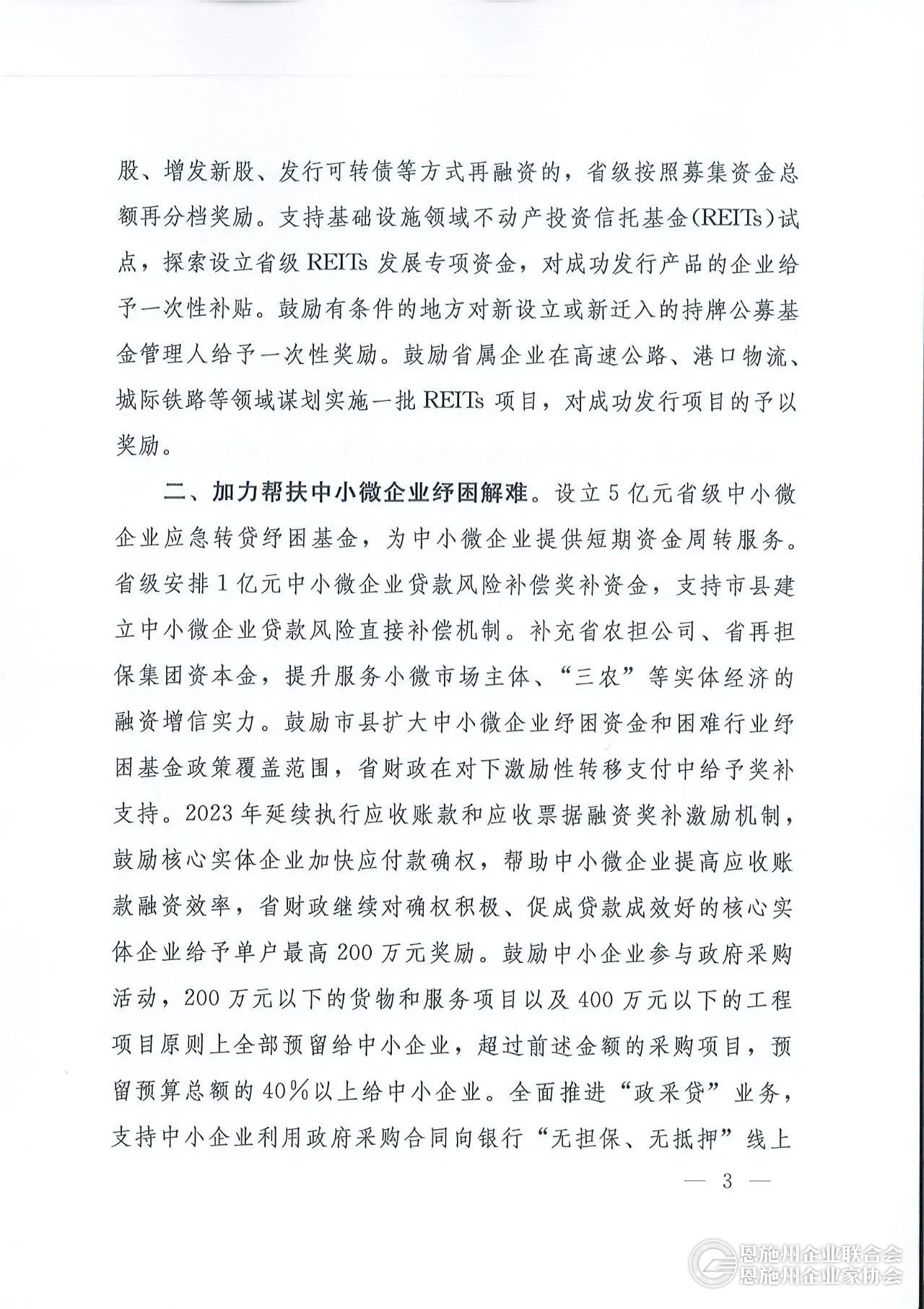 加力帮扶中小微企业纾困解难。当前一些中小微企业资金周转面临较大困难,亟需补充流动性。为缓解中小微企业融资难、融资贵问题,省委、省政府设立规模5亿元的省级中小微企业应急转贷纾困基金,为符合条件的中小微企业提供不超过10天的短期资金过桥服务,帮助按期还贷、续贷。安排1亿元中小微企业贷款风险补偿奖补资金,引导市县对银行向中小微企业发放的生产经营贷款损失予以补偿,支持银行机构扩大中小微企业信贷规模。对开展线上融资业务的中小企业,实行“无担保、无抵押”,并给予20%以上的利率优惠。