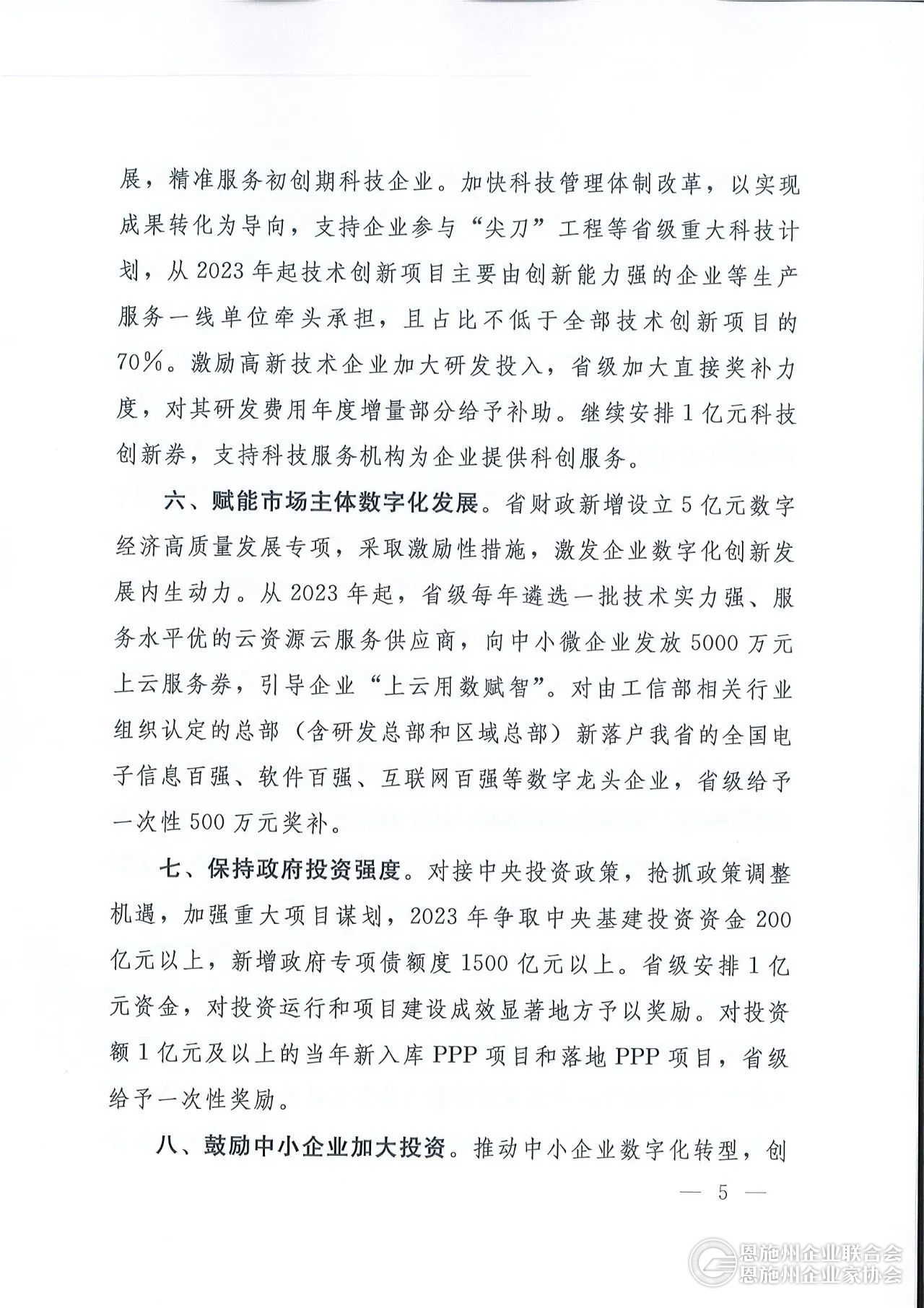 加大需求端发力。保持政府投资,积极争取并用好中央基建资金和政府专项债,对新增PPP项目奖励。今年继续发放消费券,激发线下消费。增加省级外经贸专项规模,支持做大做强外向型经济。