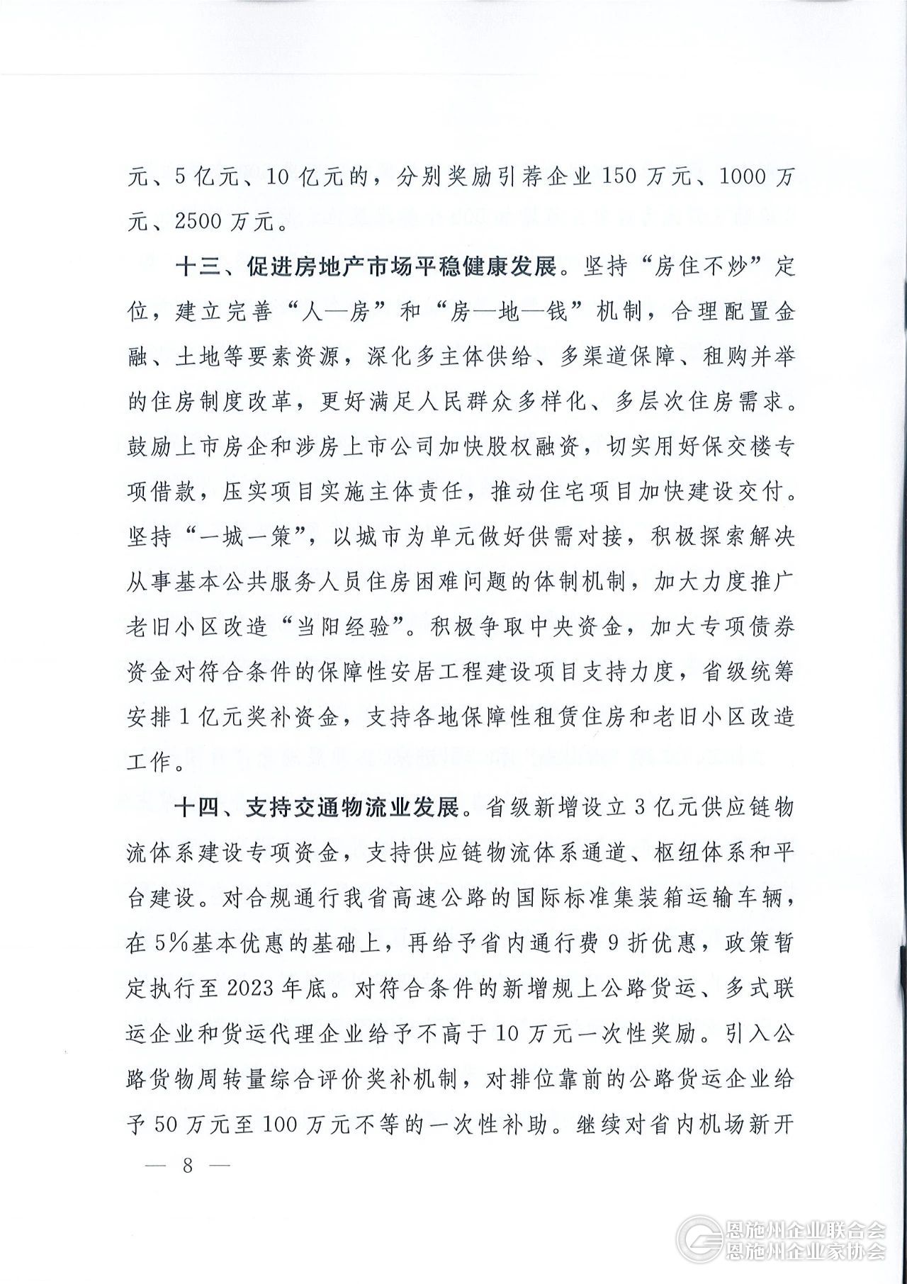 支持交通物流企业发展。前期我省已出台政策,明确对新入规公路货运企业以及公路货物周转量排名靠前的企业予以奖补。为支持交通物流企业发展壮大,“16条”将多式联运企业、货代企业也纳入了支持范围。