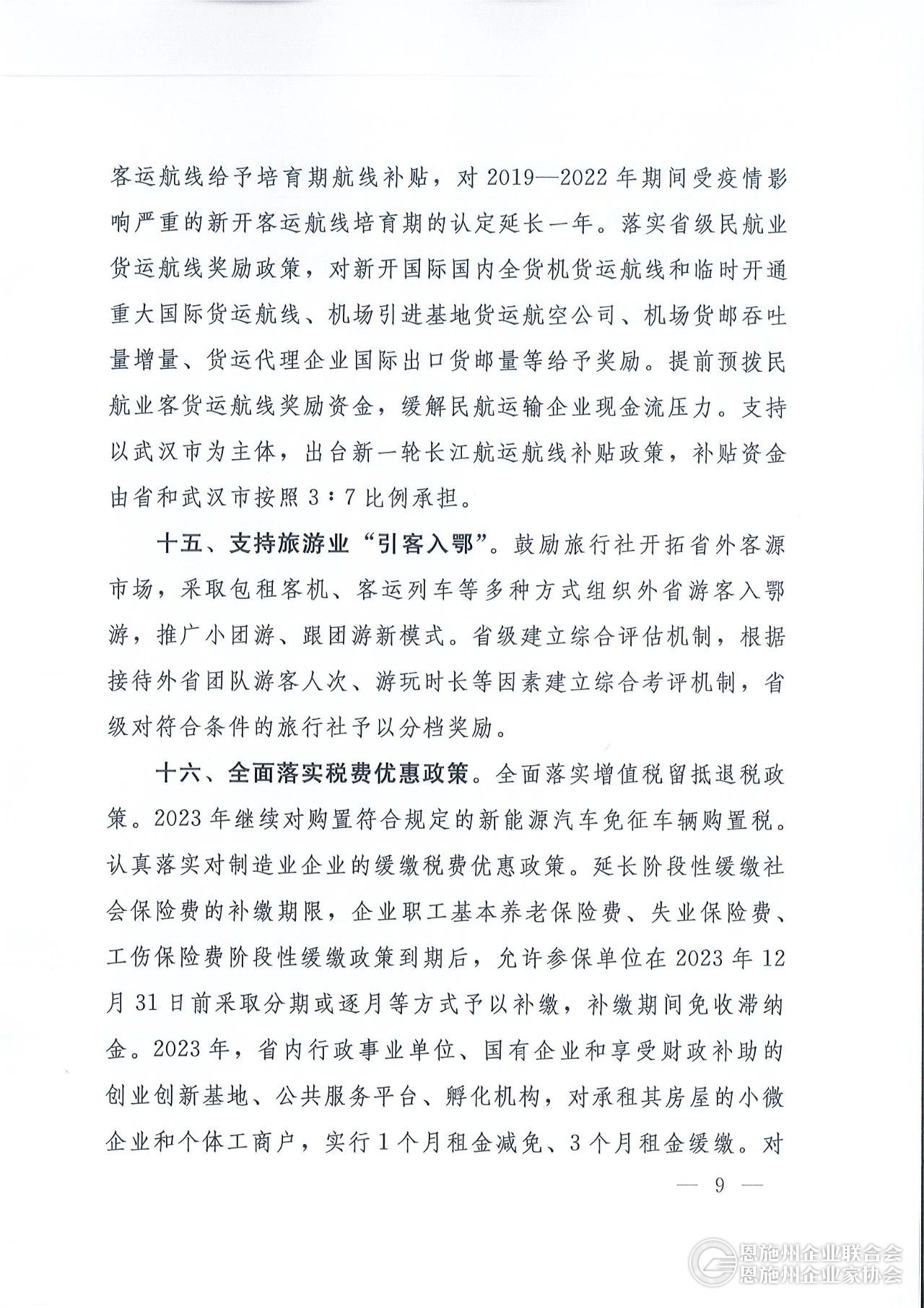 支持旅游业“引客入鄂”。
