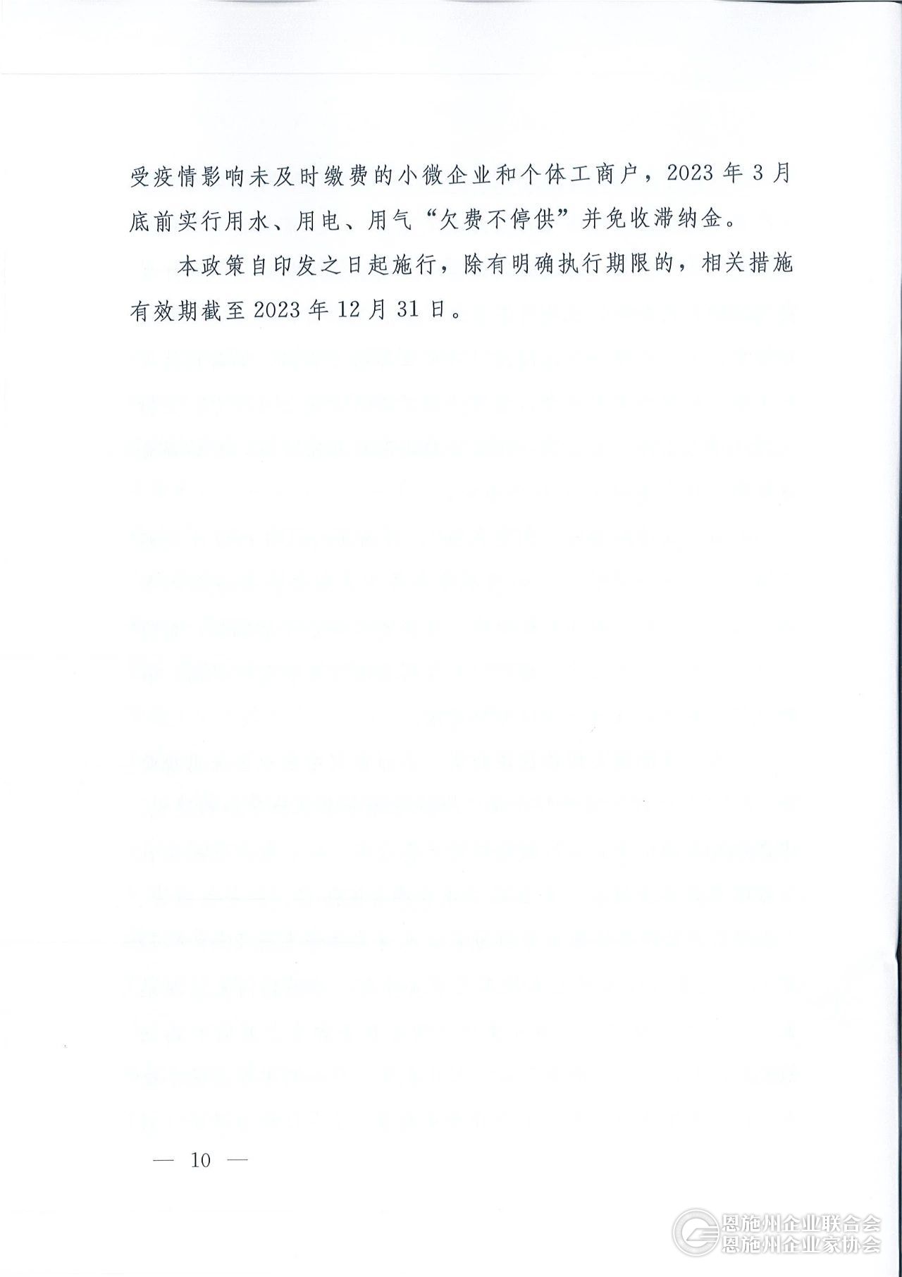 2023年,省内行政事业单位、国有企业和享受财政补助的创业创新基地、公共服务平台、孵化机构,对承租其房屋的小微企业和个体工商户,实行1个月租金减免、3个月租金缓缴。对受疫情影响未及时缴费的小微企业和个体工商户,2023年3月底前实行用水、用电、用气“欠费不停供”,预计全年将为符合条件的小微企业和个体工商户减免房租2亿元。