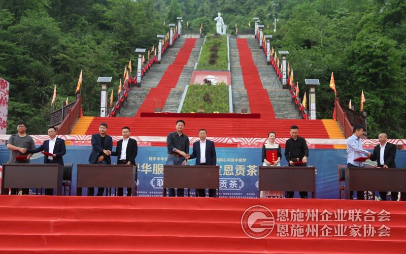 启动仪式上,分别举行了拜谒大典和茶商大会。现场为“宣恩县2023年伍家台贡茶斗茶大赛”获奖单位颁奖,有5家茶叶生产商及5家茶叶采购商进行了现场签约。