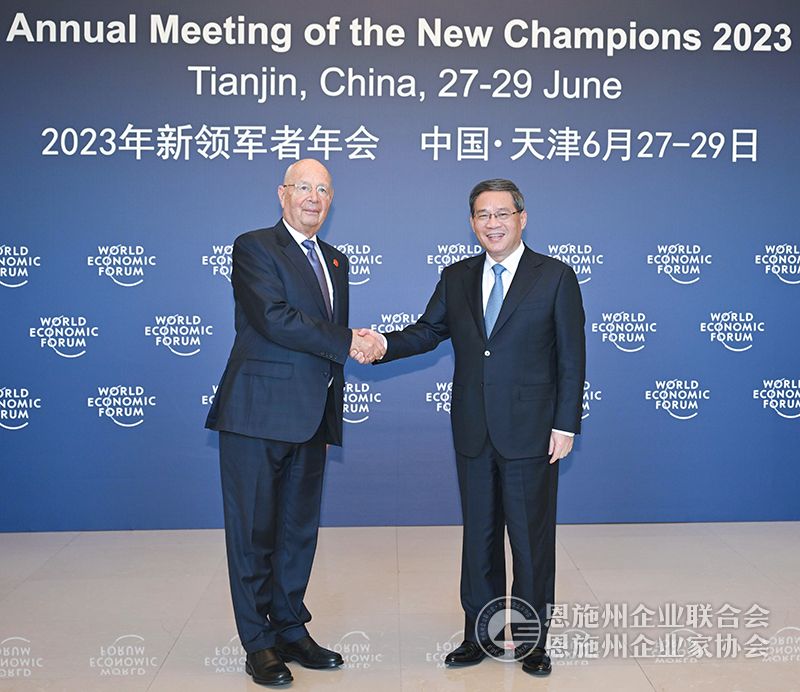 国务院总理李强6月26日下午在天津会见世界经济论坛主席施瓦布。