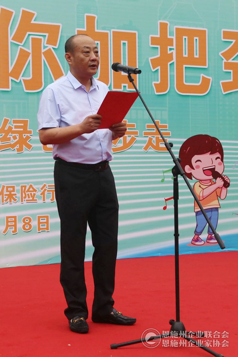 恩施州保险行业协会会长钟宇宣读“无偿献血倡议书”。