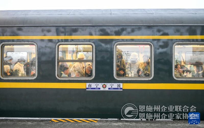 1月26日,在湖南省永州市道县道州站,乘客在T582次列车上等候发车。新华社发(蒋克青摄)