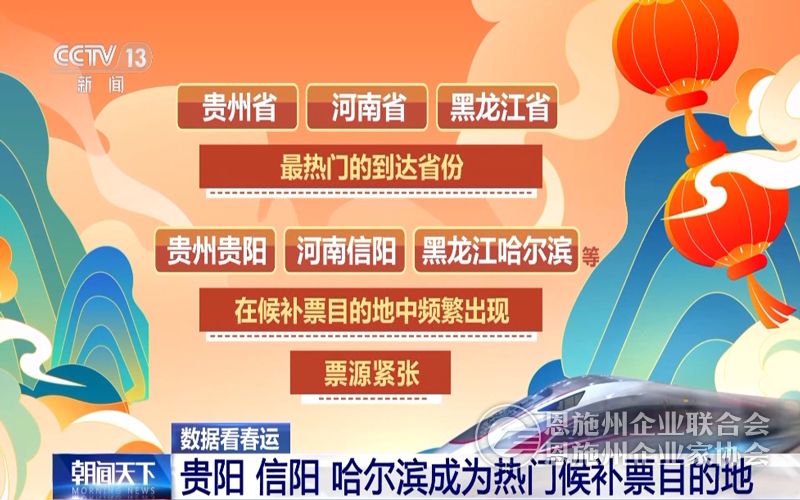 贵州省、河南省、黑龙江省是最热门的到达省份。贵州贵阳、河南信阳、黑龙江哈尔滨等在候补票目的地中频繁出现,票源紧张。