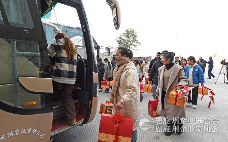 1月28日,在浙江省台州市仙居县,一家企业的甘肃籍员工登上返乡过年专车。新华社发(王华斌 摄)