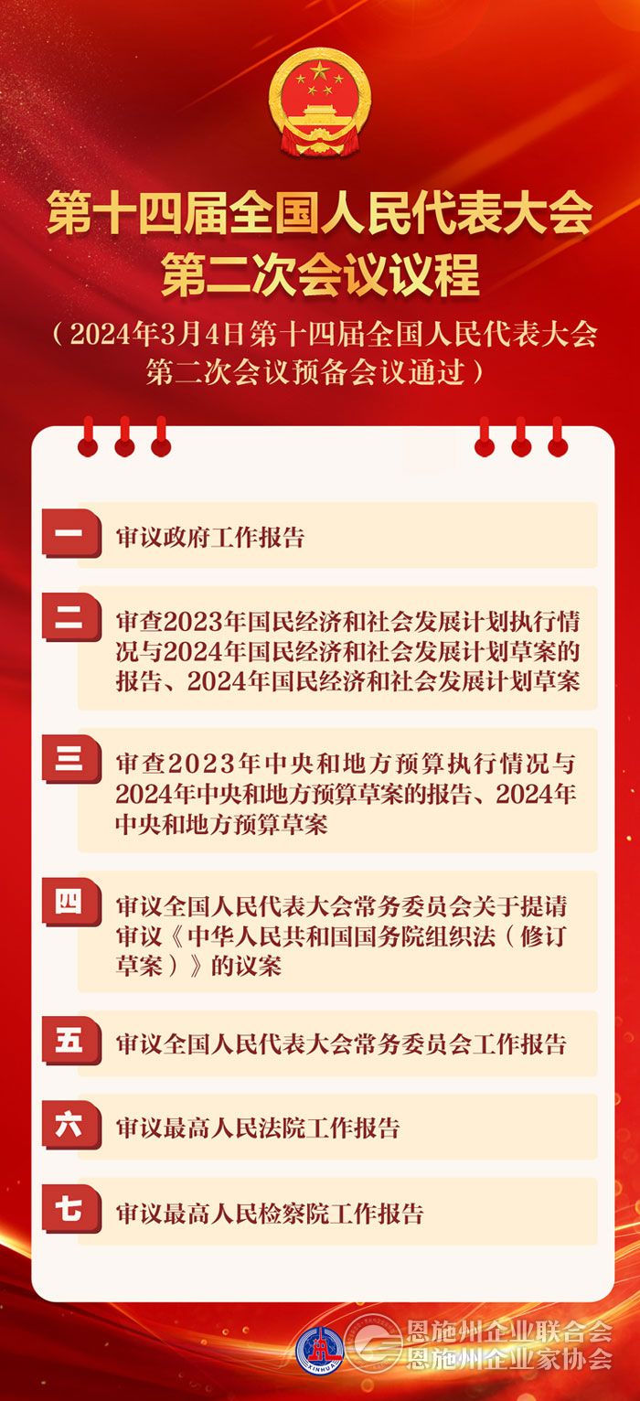 第十四届全国人民代表大会第二次会议议程