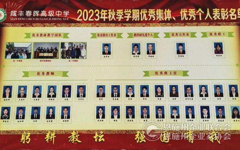 2023年,咸丰春晖高级中学首届应届生参加高考,取得优异成绩。物理方向田婧雨同学以664分勇夺南四县(宣恩、咸丰、来凤、鹤峰)状元,被哈尔滨工业大学(深圳校区)录取。“双一流”名校录取17人,重点大学录取114人,本科院校录取534人。