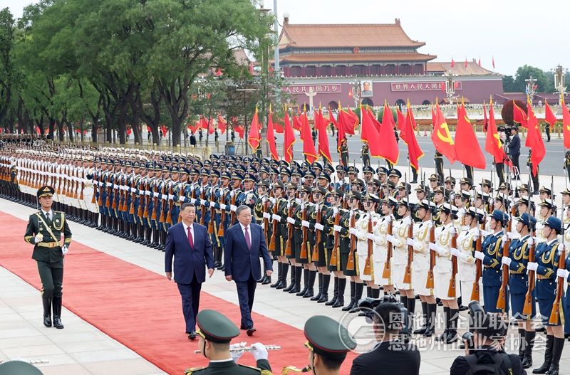 8月19日,中共中央总书记、国家主席习近平在北京人民大会堂同来华进行国事访问的越共中央总书记、国家主席苏林举行会谈。这是会谈前,习近平在人民大会堂东门外广场为苏林举行欢迎仪式。新华社记者 翟健岚 摄