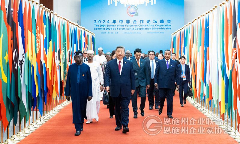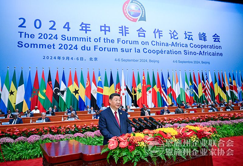 习近平指出,在这收获的季节,很高兴同各位新老朋友相聚北京,共商新时代中非友好合作大计。中非友好穿越时空、跨越山海、薪火相传。中非合作论坛成立24年来特别是新时代以来,中国同非洲兄弟姐妹们本着真实亲诚理念,在世界百年变局中肩并肩、手拉手,坚定捍卫彼此正当权益;在经济全球化大潮中强筋骨、壮体魄,累累硕果惠及中非亿万百姓;在大灾大疫面前同甘苦、共拼搏,书写了一个个中非友好的感人故事;始终相互理解、彼此支持,树立了新型国际关系的典范。经过近70年辛勤耕耘,中非关系正处于历史最好时期。面向未来,中方提议将中国同所有非洲建交国的双边关系提升到战略关系层面,将中非关系整体定位提升至新时代全天候中非命运共同体。