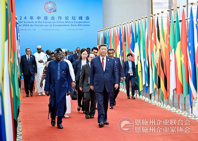 9月5日上午,国家主席习近平在北京人民大会堂出席中非合作论坛北京峰会开幕式并发表主旨讲话。习近平宣布,中国同所有非洲建交国的双边关系提升到战略关系层面,中非关系整体定位提升至新时代全天候中非命运共同体,将实施中非携手推进现代化十大伙伴行动。
