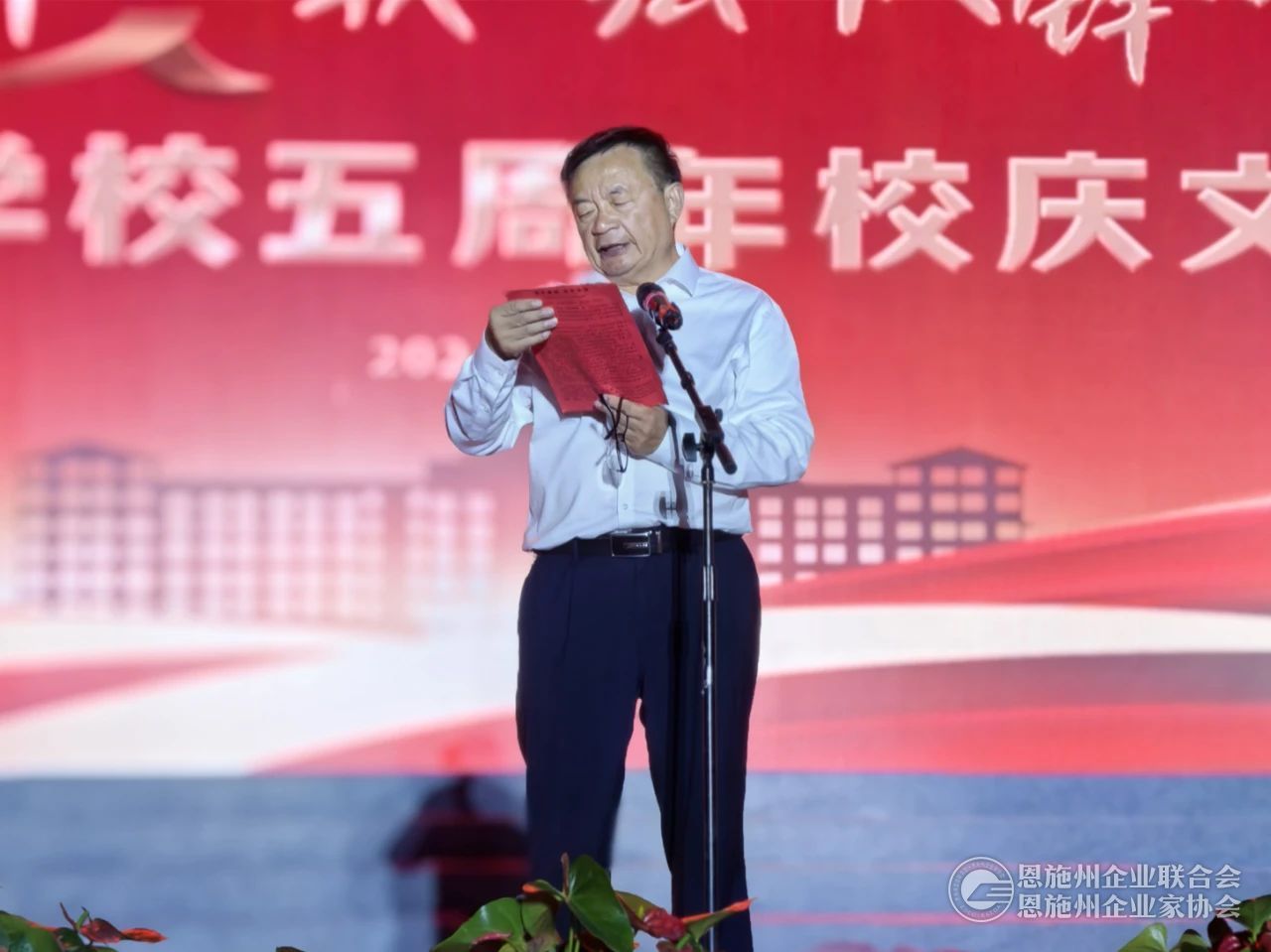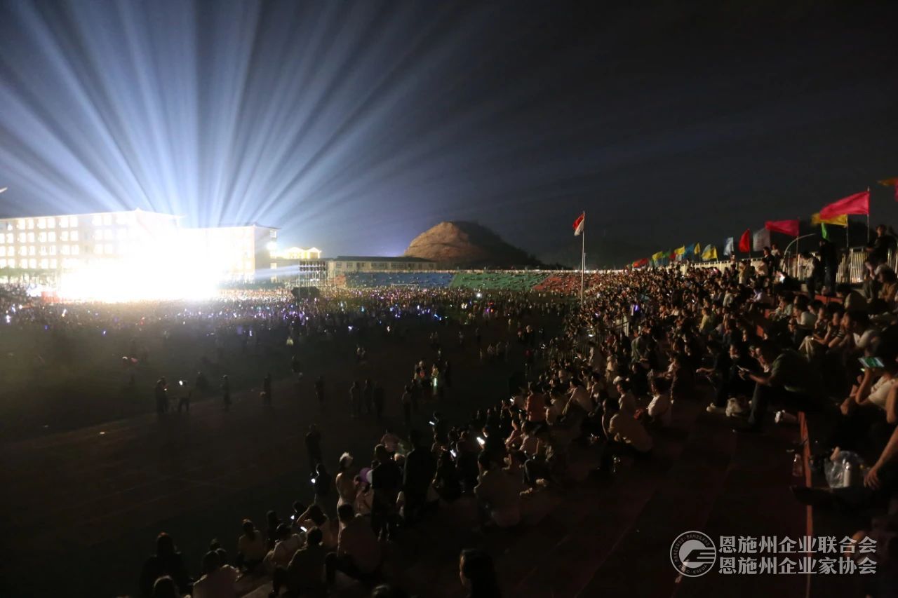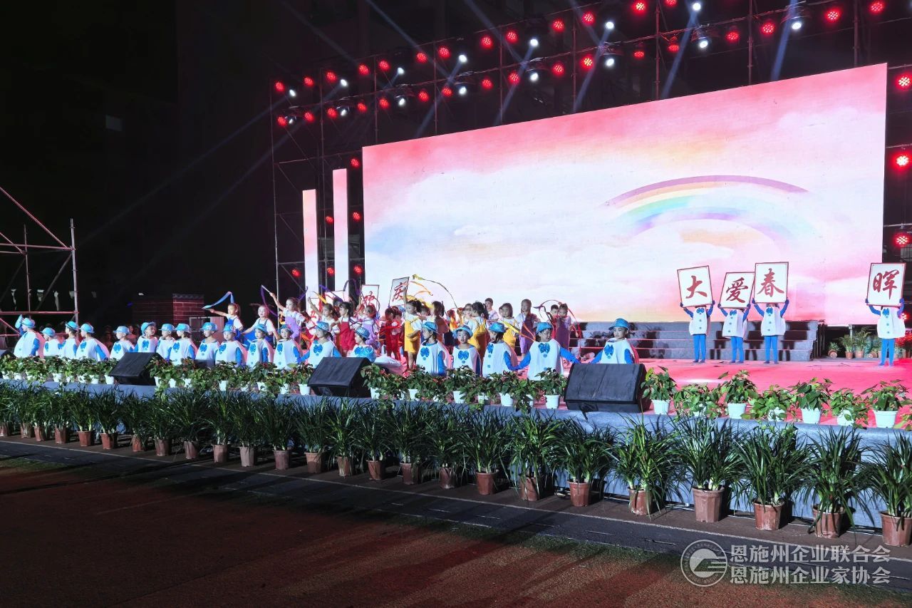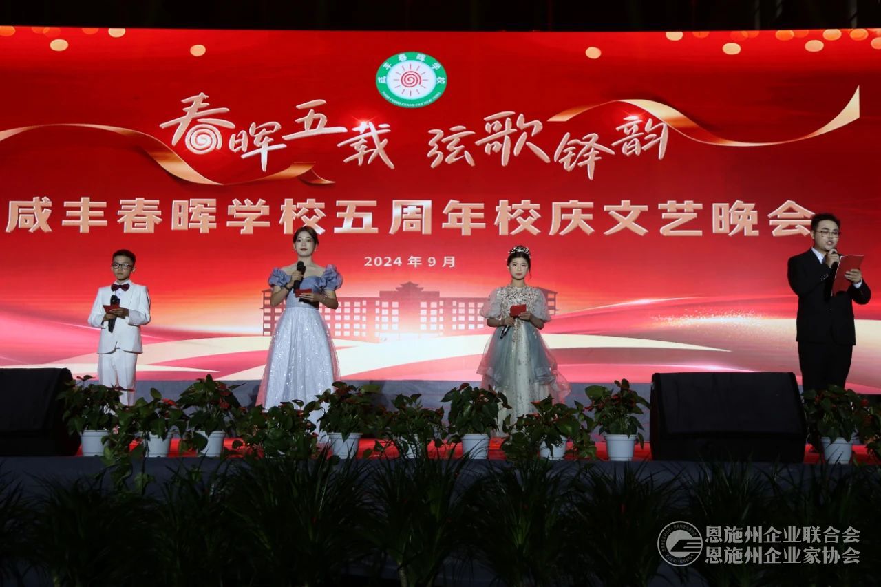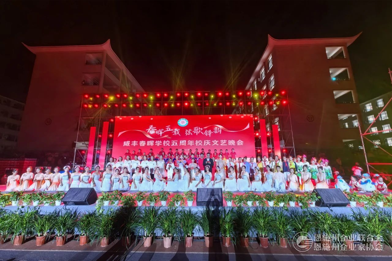 2024年9月28日晚,咸丰春晖学校五周年校庆文艺晚会在咸丰春晖学校大操场隆重举行。1万多观众在现场共同欣赏了咸丰春晖学校师生们用歌唱、舞蹈、朗诵、情景剧等形式进行的精彩表演,展示了学校五年来的辉煌成就。恩施州企联秘书长刘力、副秘书长兼办公室主任傅开宇应邀出席晚会。