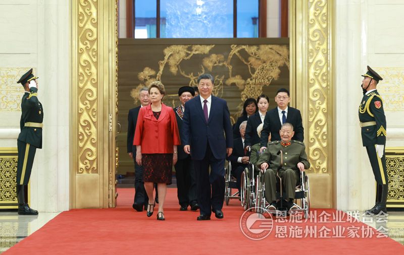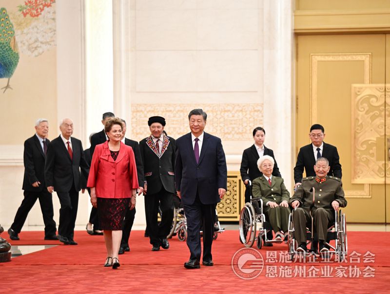 习近平指出,75年来,世界上有很多与中国人民志同道合、风雨同舟的老朋友、好朋友,今天被授予“友谊勋章”的迪尔玛·罗塞芙女士就是其中的杰出代表。中国人民永远不会忘记那些为中国发展、增进中国人民同各国人民友谊作出突出贡献的国际友人。中国人民愿携手世界各国人民,维护世界和平,促进共同发展,推动构建人类命运共同体,开创人类更加美好的未来。