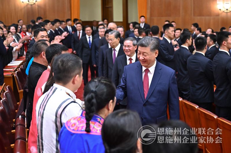 人民大会堂万人大礼堂华灯璀璨、气氛喜庆。19时55分,在欢快的乐曲声中,习近平等领导同志步入大礼堂,同少数民族代表、老同志代表亲切握手,全场响起热烈的掌声。