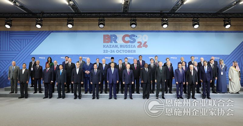 当地时间10月24日上午,国家主席习近平在喀山会展中心出席“金砖+”领导人对话会并发表题为《汇聚“全球南方”磅礴力量 共同推动构建人类命运共同体》的重要讲话。这是出席对话会的金砖国家及嘉宾国领导人或代表、国际组织负责人集体合影。新华社记者 姚大伟 摄