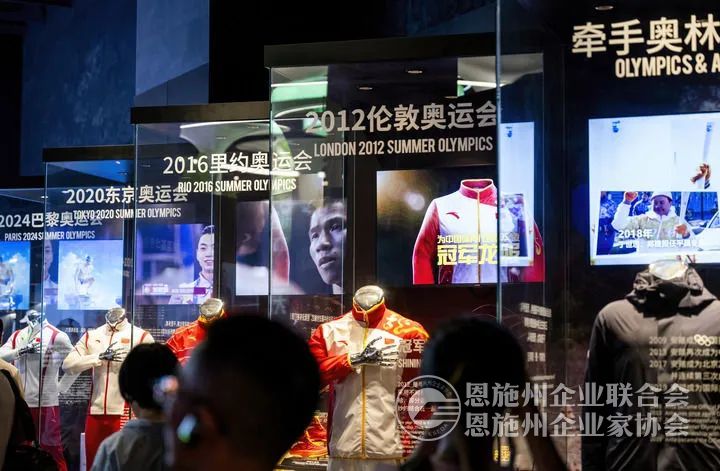 在福建晋江,安踏集团设立的博物馆里摆放着安踏集团与奥林匹克运动“牵手”的展柜(2024年8月22日摄)。