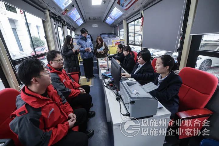浙江省嘉兴市南湖区政务服务中心政务服务大篷车来到浙江凯乐士科技集团股份有限公司,企业员工在车上咨询社保、医保、人才等方面政策(2025年2月25日摄)。新华社记者 徐昱 摄
