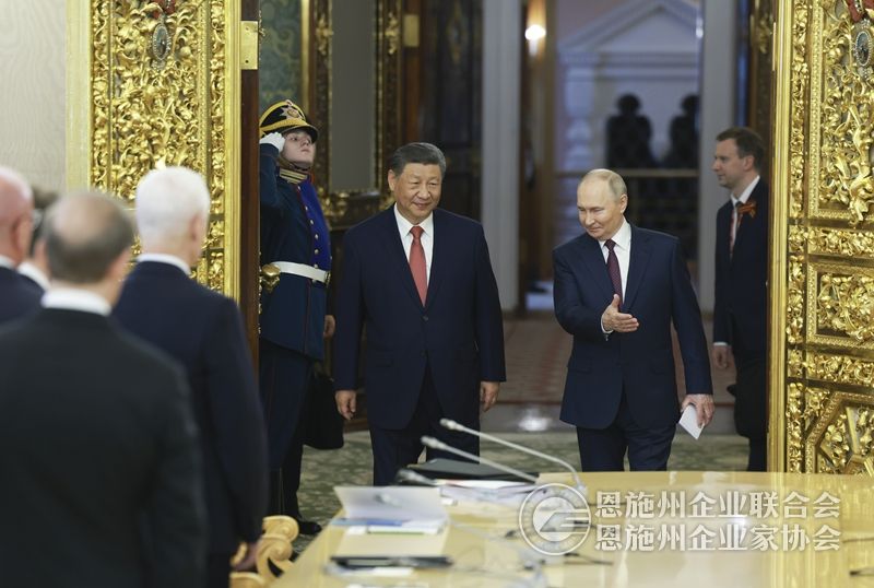 当地时间5月8日上午,俄罗斯总统普京同中国国家主席习近平在莫斯科克里姆林宫举行会谈。这是两国元首步入会场。新华社记者 王晔 摄