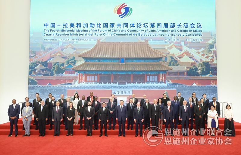 5月13日上午,国家主席习近平在北京国家会议中心出席中国-拉美和加勒比国家共同体论坛第四届部长级会议开幕式并发表主旨讲话。这是习近平同与会嘉宾集体合影。新华社记者 丁海涛 摄