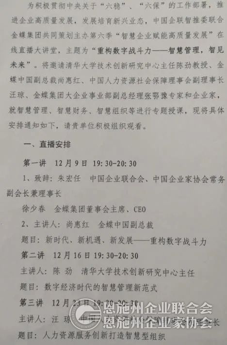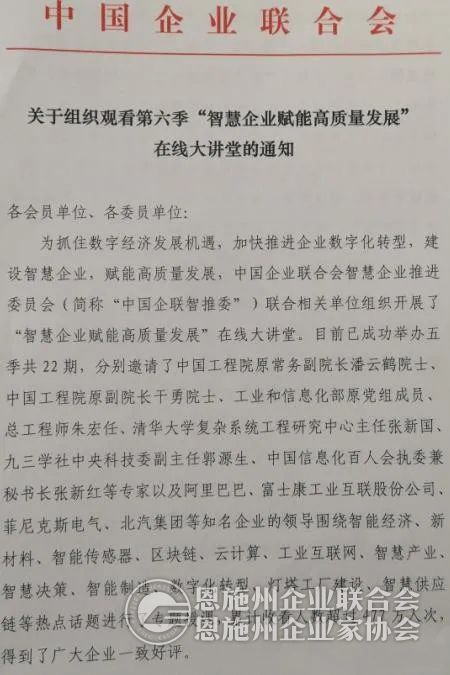 转发中国企联第六季智慧企业在线大讲堂的通知