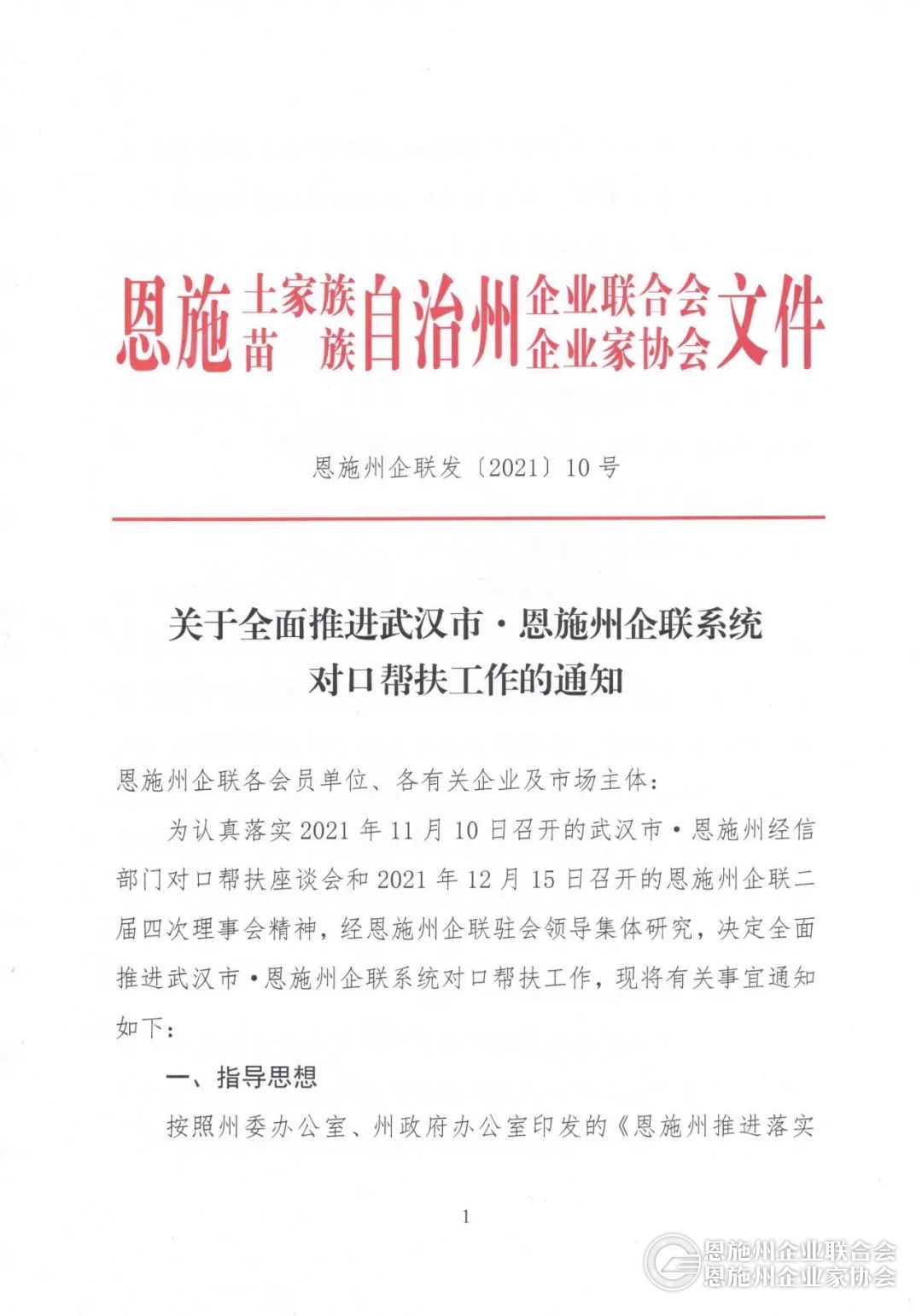关于全面推进武汉市·恩施州企联系统对口帮扶工作的通知