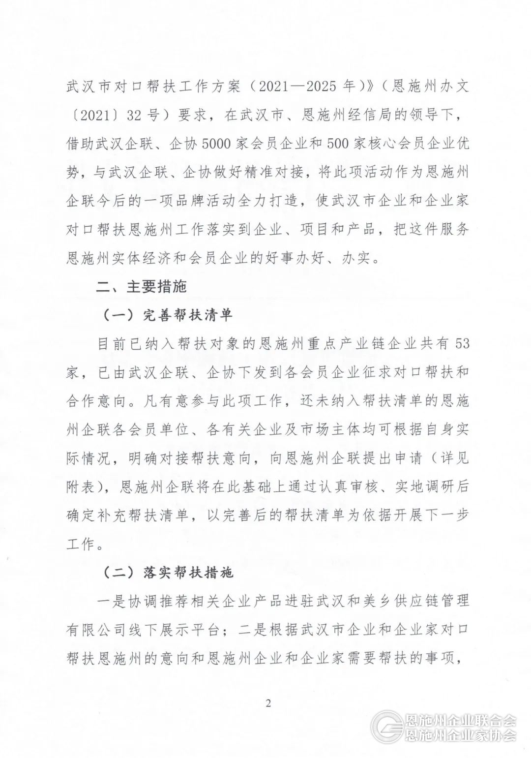 关于明确武汉市·恩施州企联系统首批对口帮扶工作重点对象的通知