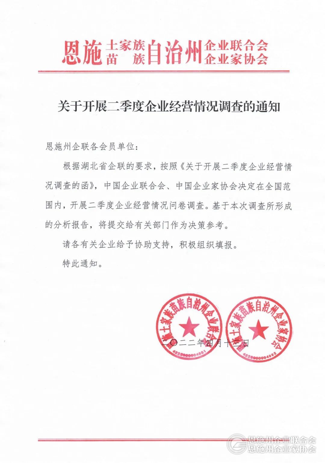 关于开展二季度企业经营情况调查的通知
