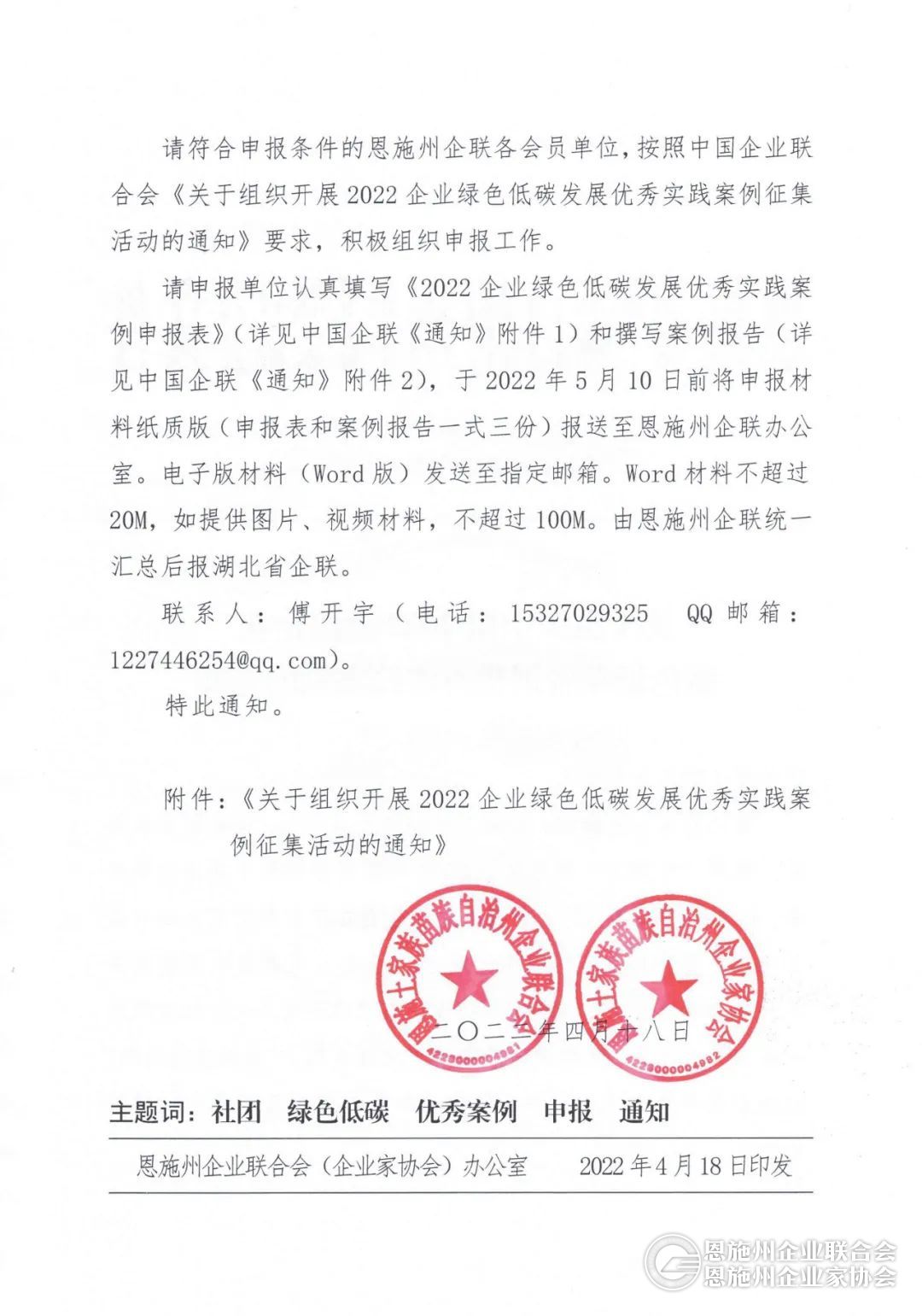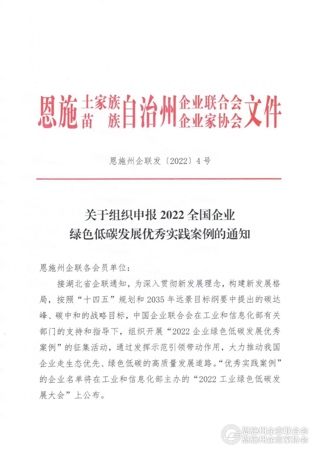 关于组织申报2022全国企业绿色低碳发展优秀实践案例的通知