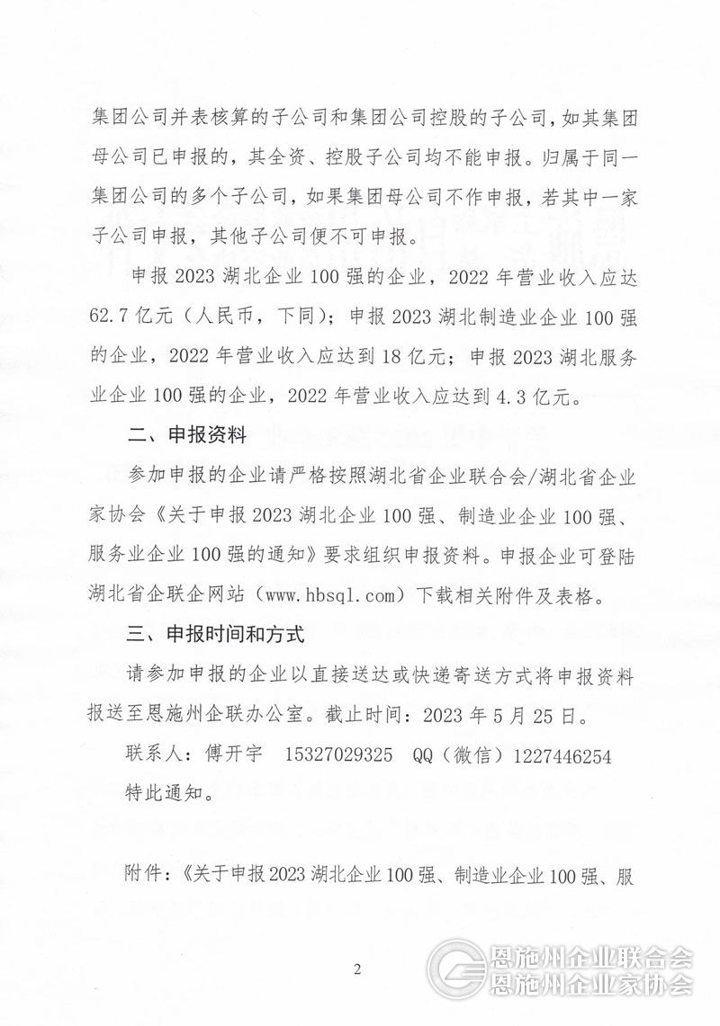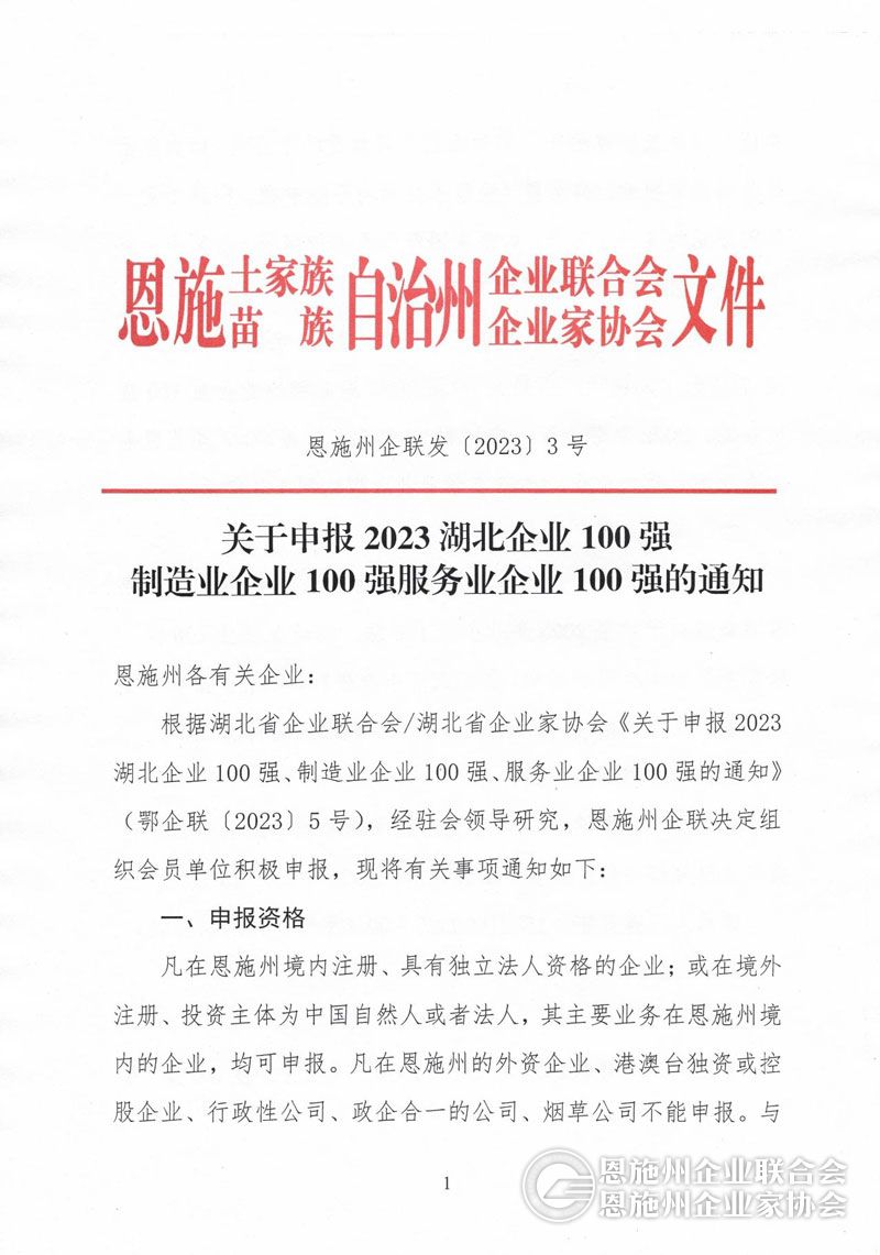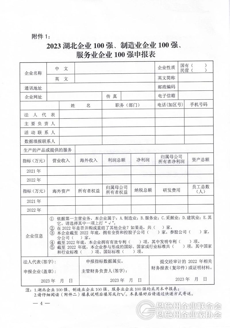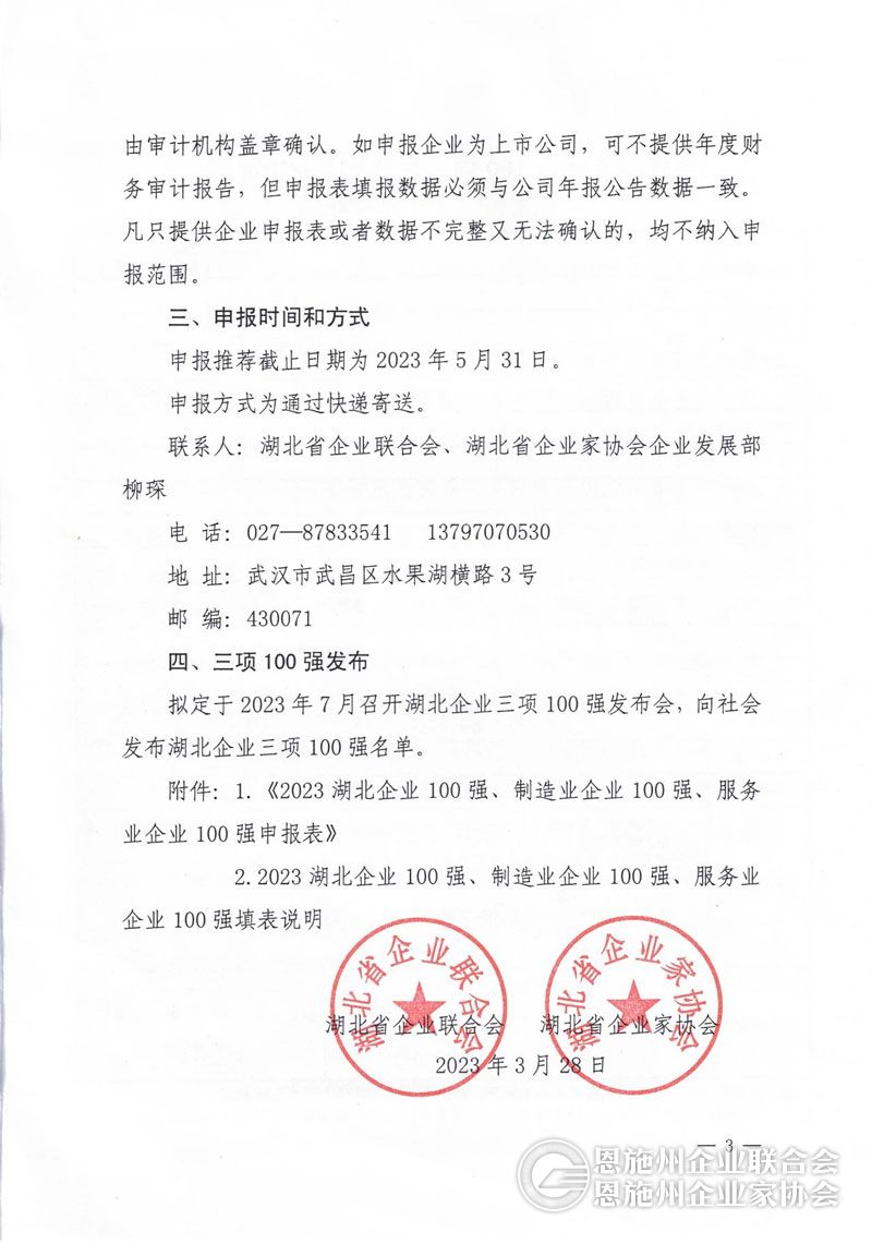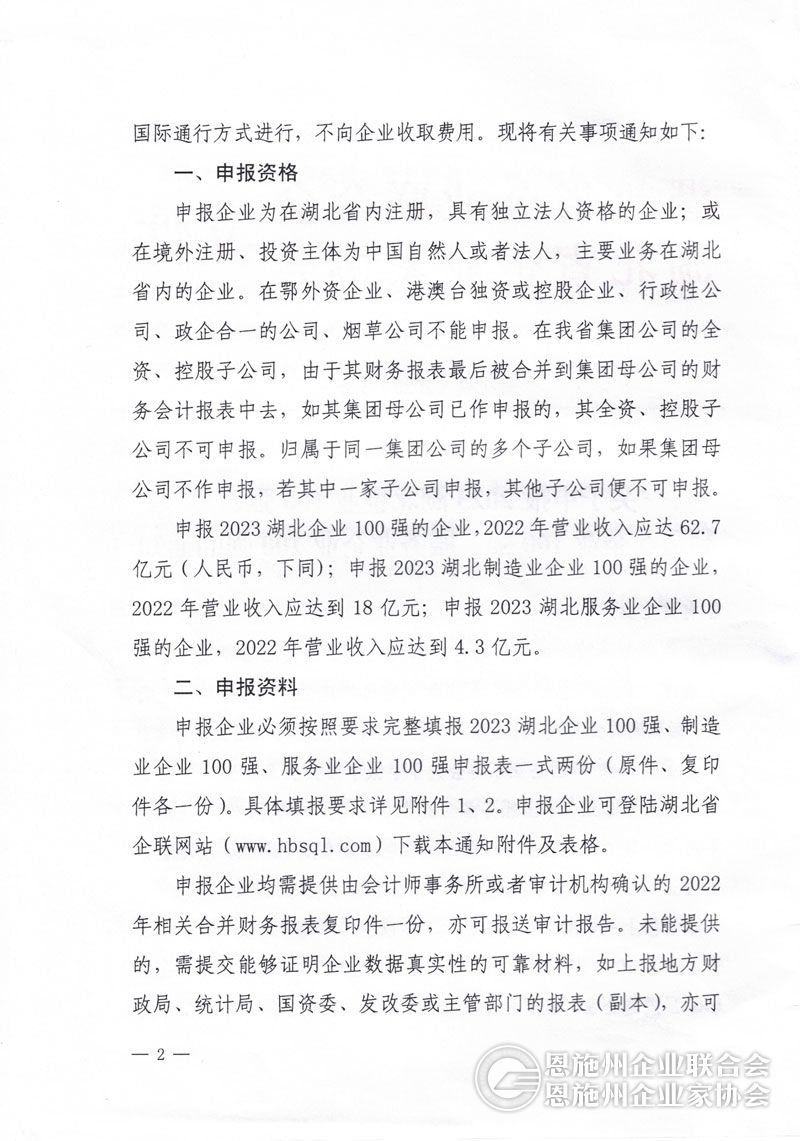 关于申报2023湖北企业100强制造业企业100强服务业企业100强的通知