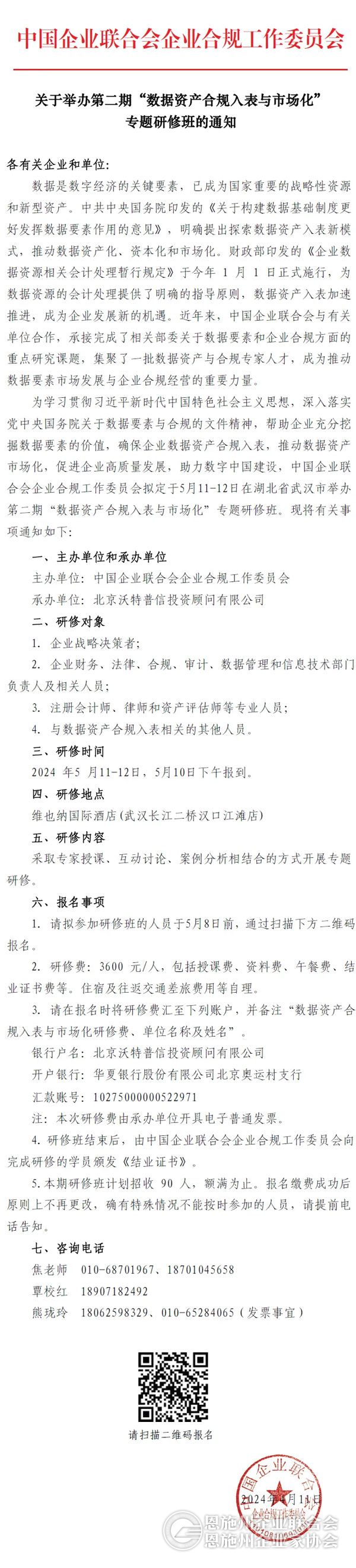 关于举办第二期“数据资产合规入表与市场化”专题研修班的通知