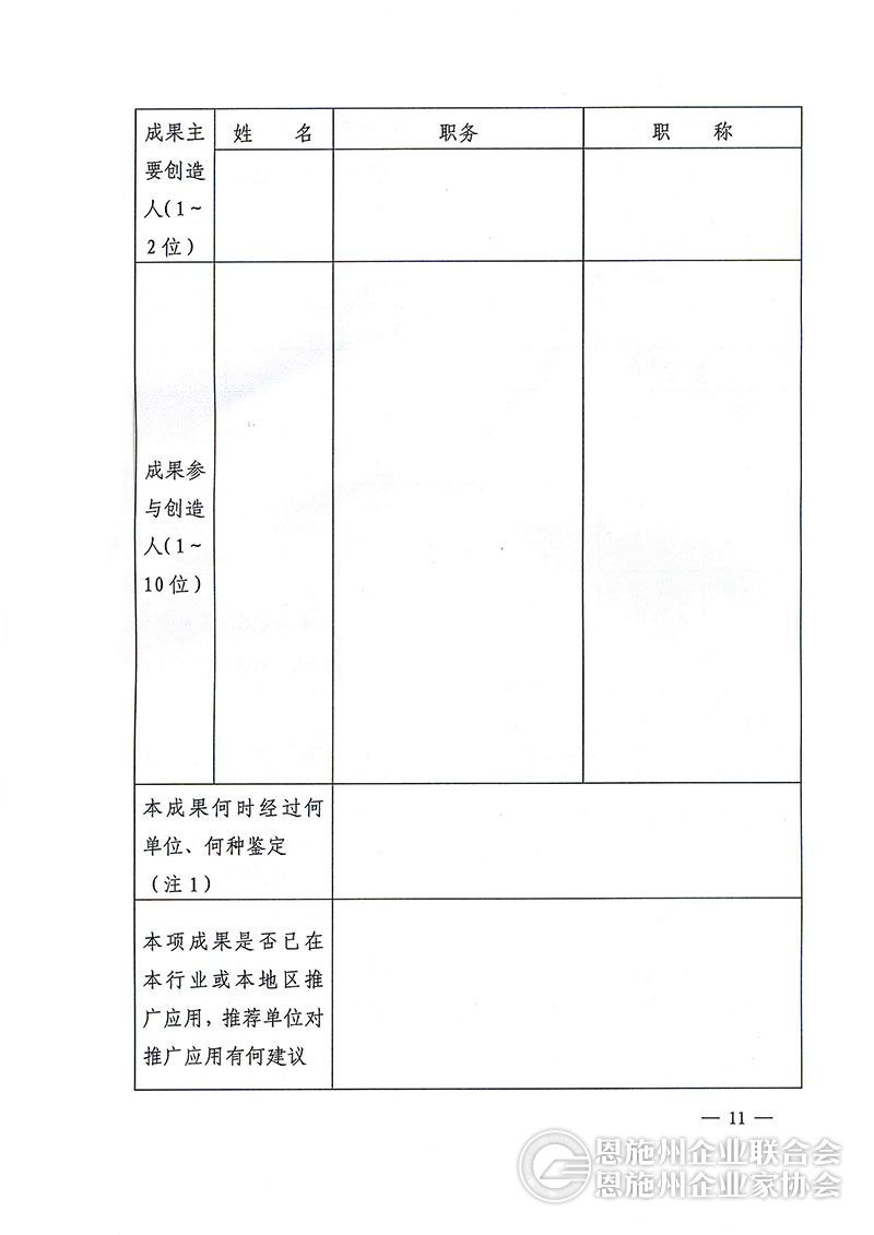 湖北省企业管理现代化创新成果申报表