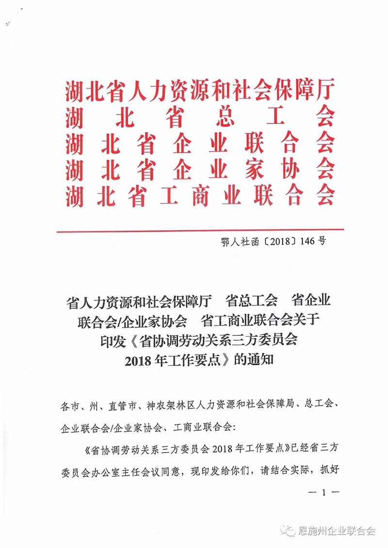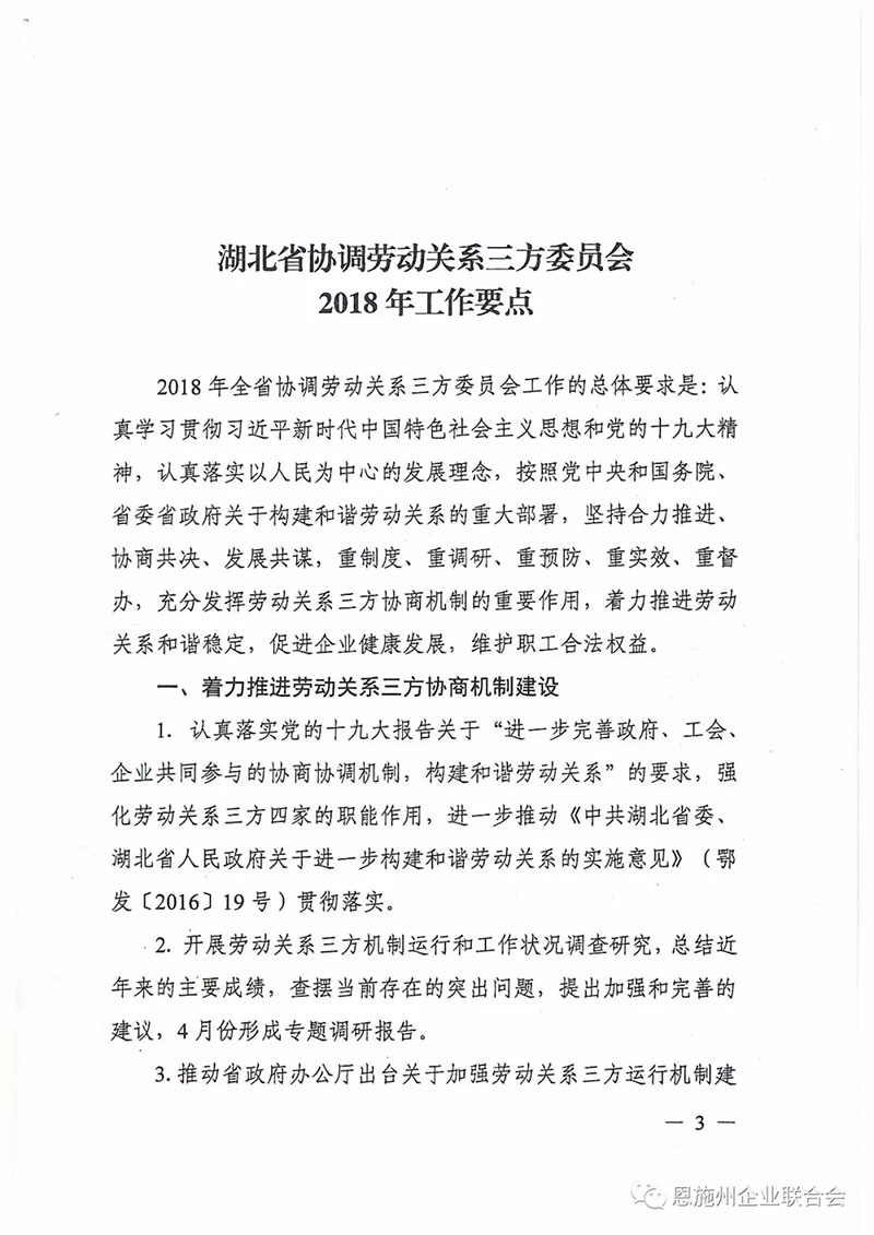 湖北省协调劳动关系三方委员会2018年工作要点: