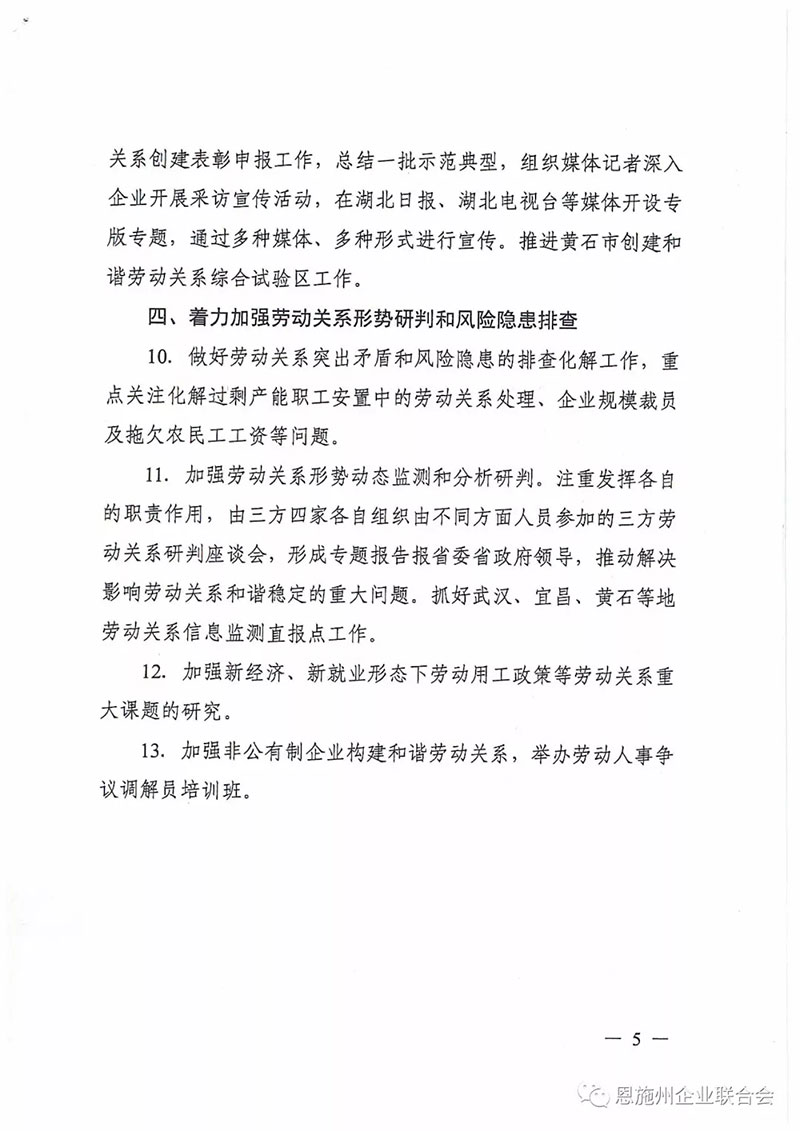 中共恩施州委 恩施州人民政府 关于进一步构建和谐劳动关系的实施意见