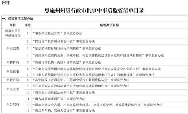 《恩施州级行政审批事中事后监管清单目录》的通知