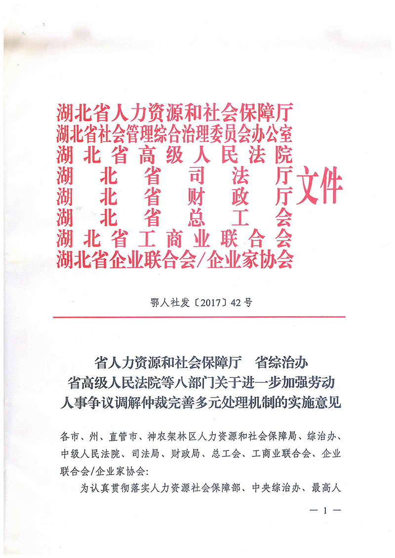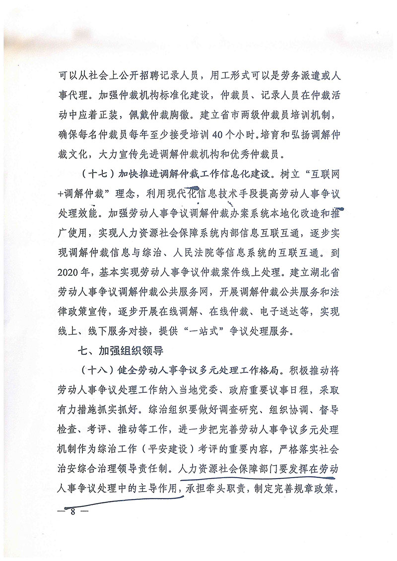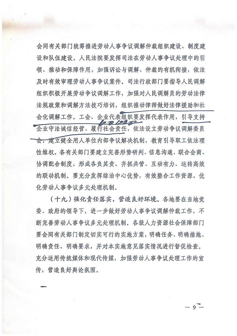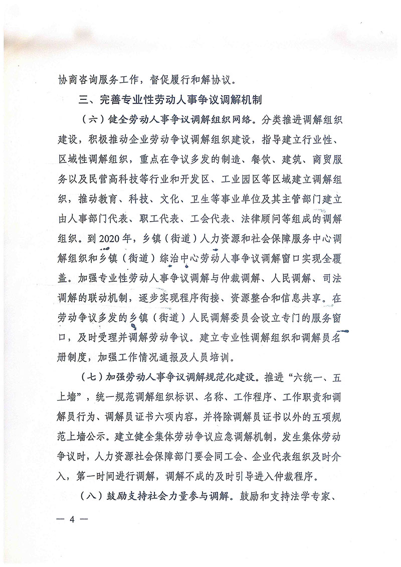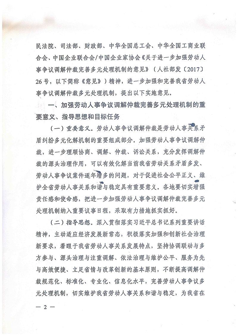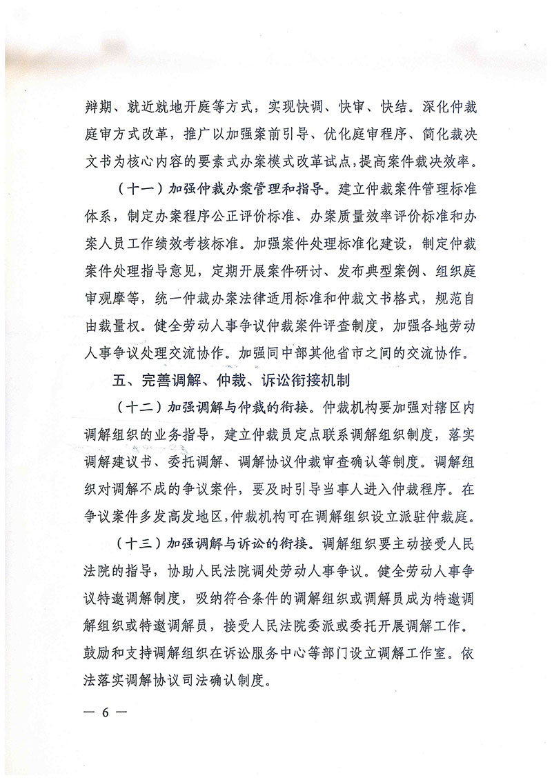 关于进一步加强劳动人事争议调解仲裁完善多元处理机制的实施意见