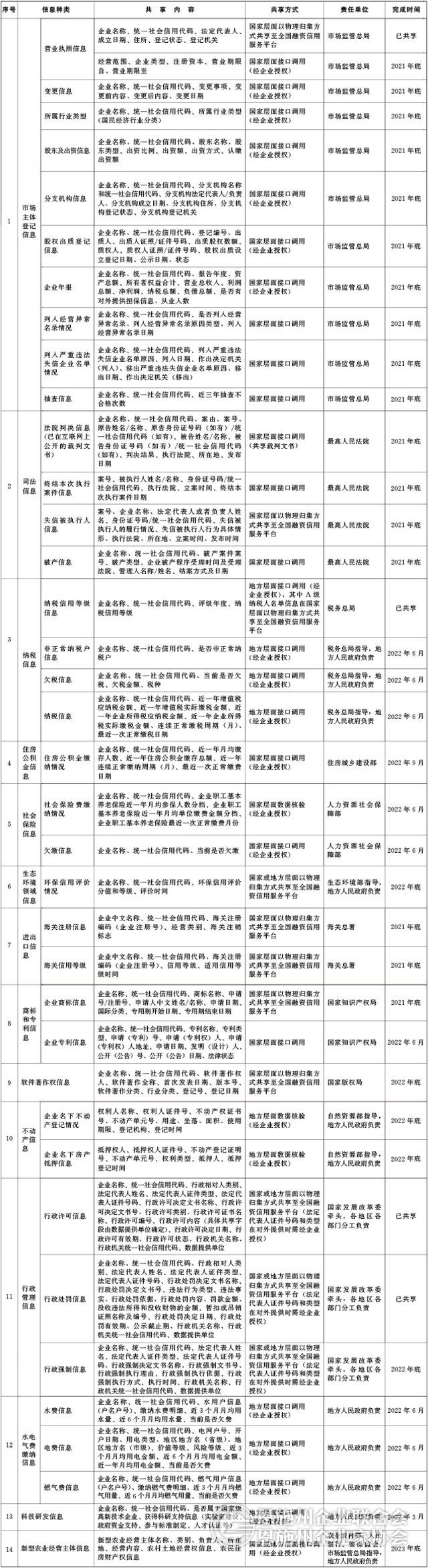 注:1.“中小微企业”是指按照工业和信息化部等有关部门制定的中小企业划型标准确定的中型、小型、微型企业。个体工商户、农民专业合作社、农村集体经济组织的相关信用信息共享工作参照本实施方案执行。