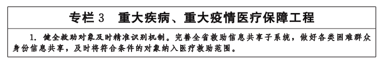 ——保障体系更加完善。基本医保、大病保险、医疗救助制度三重保障功能更加完善,多层次医疗保障体系更加成熟定型,基本医保市级统筹全面做实,省级统筹稳步推进。待遇政策更加规范统一,各方责任更加均衡,城乡间、区域间医保水平差距逐步缩小,大病和慢性病保障水平明显提升,长期护理保险制度建设有力推进。