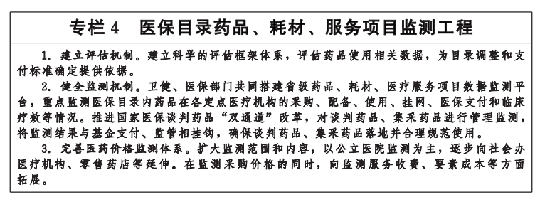 ——医药服务更加高效。医疗保障和医药服务高质量协同发展,医保支付方式改革全面完成,支付机制高效管用,药品和高值医用耗材集中带量采购品种范围逐步扩大,医疗服务价格及时动态调整,医保基金战略购买作用发挥更加充分。